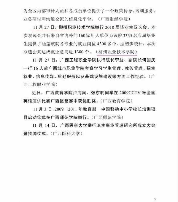 2009年12月28日,《广西教育信息》2009年第85期发布我院举行2010届毕业生双选会的信息。(图/蒋玉梅)