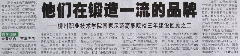 “他们在锻造一流的品牌”——《柳州日报》头版刊登我院国家示范高职院校三年建设回顾系列报道之二