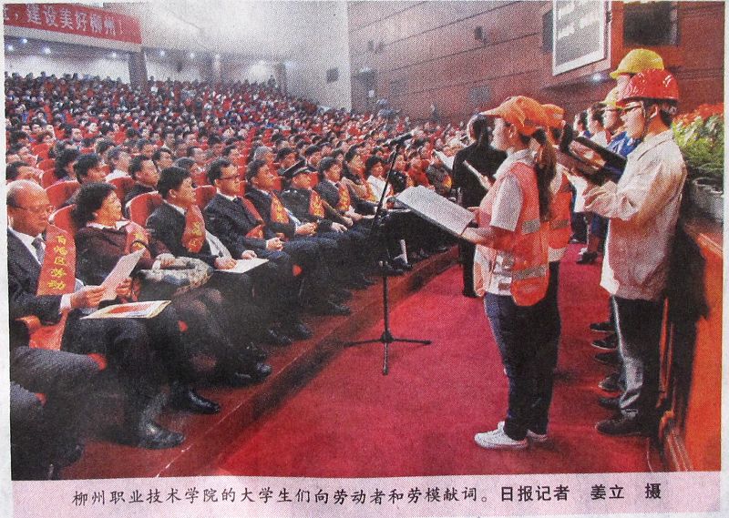 《柳州日报》报道我院学生在柳州市庆祝“五一”国际劳动节暨劳动模范表彰大会上献词的新闻
