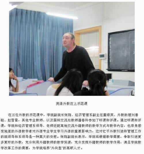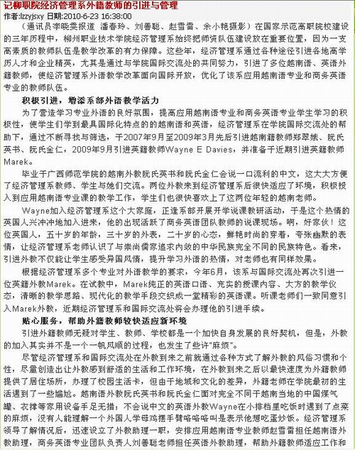 柳州教育网发布我院经济管理系引进外籍教师的信息 来源:柳州职业技术学院新闻网 作者:朱汝群 编审: 发布时间:2010-06-25 浏览次数: 次 【字体:小 大】 分享到: 2010年6月25日,柳州教育网发布我院经济管理系引进外籍教师的信息。(文/朱汝群) 发布的信息截图 关闭 打印正文