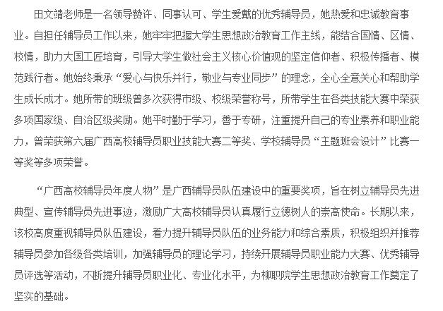 【广西新闻网】柳职院田文靖获“2016年广西高校辅导员年度人物”
