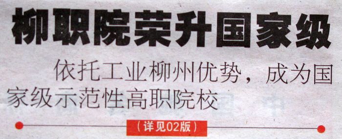 据悉,2010年7月26日上午,柳州职业技术学院国家示范性高职院校建设项目通过教育部、财政部验收新闻发布会在柳州市新闻发布中心举行。当天,来自《光明日报》、《广西日报》、广西电视台、《柳州日报》、《柳州晚报》、《南国今报》、柳州电视台、柳州人民广播电台、柳州教育网等各级媒体参加发布会。