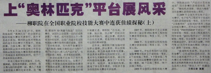 2010年7月28日,《柳州日报》要闻版发布我院在全国职业技能大赛获奖系列报道。