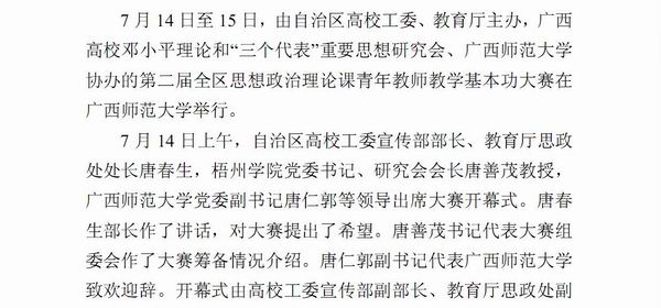 2010年第26期《广西教育工作简报》发布我院教师冯新宇在全区第二届高校思想政治理论课青年教师教学基本功大赛中获一等奖的信息。(图/朱汝群)