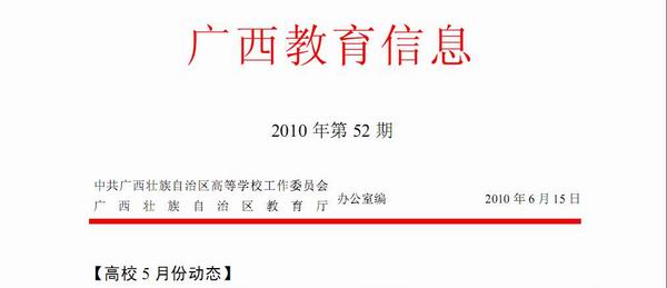 《广西教育信息》2010年第52期发布我院副院长张翔教授入选教育部高等学校创业教育指导委员会的信息。(图/朱汝群)