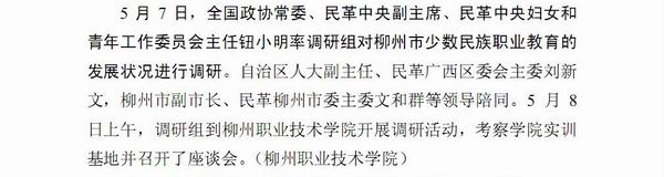 《广西教育信息》发布民革中央调研组到我院调研柳州市少数民族职业教育发展状况的信息