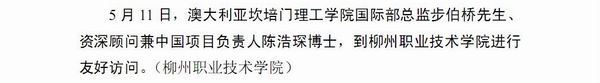 《广西教育信息》发布澳大利亚坎培门理工学院领导到我院访问的信息 来源:柳州职业技术学院新闻网 作者:朱汝群 编审: 发布时间:2010-08-31 浏览次数: 次 【字体:小 大】 分享到: 《广西教育信息》2010年第59期发布澳大利亚坎培门理工学院领导到我院访问的信息。(图/朱汝群) 《广西教育信息》发布我院信息的截图 关闭 打印正文