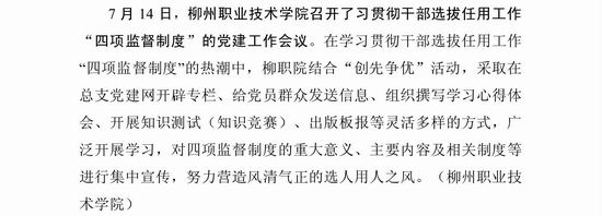 《广西教育信息》发布我院召开学习贯彻干部选拔任用工作“四项监督制度”党建工作会议的信息