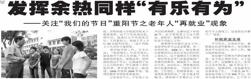 2010年10月14日,《柳州日报》第三版报道我院外聘教师王永生老师勇于追求人生价值,发挥余热的事迹。(图/蒋玉梅)