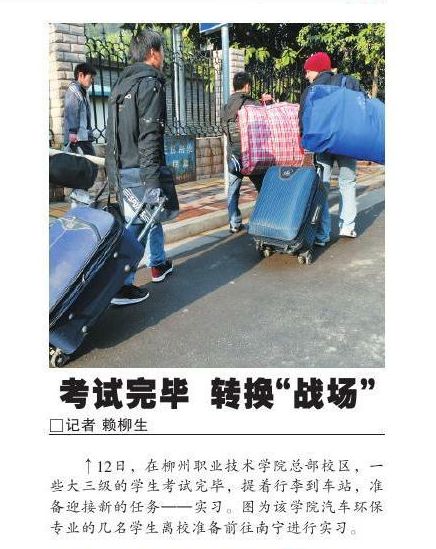 《柳州晚报》报道我院学生寒假赴企业实习的新闻 来源:柳州职业技术学院新闻网 作者:蒋玉梅 编审: 发布时间:2011-01-15 浏览次数: 次 【字体:小 大】 分享到: 2011年1月14日,《柳州晚报》报道我院学生寒假赴企业实习的新闻。(图/蒋玉梅) 《柳州晚报》报道我院新闻的截图 关闭 打印正文