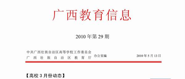 《广西教育信息》发布我院获得2010年高职院校单独招生试点资格的信息 来源:柳州职业技术学院新闻网 作者:朱汝群 编审: 发布时间:2010-06-13 浏览次数: 次 【字体:小 大】 分享到: 《广西教育信息》2010年第29期发布我院获得2010年高职院校单独招生试点资格的信息。(文、图/朱汝群) 《广西教育信息》发布我院信息的截图 关闭 打印正文