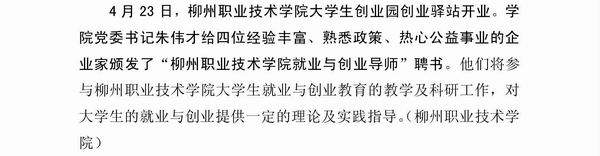 《广西教育信息》发布我院大学生创业园创业驿站开业的信息