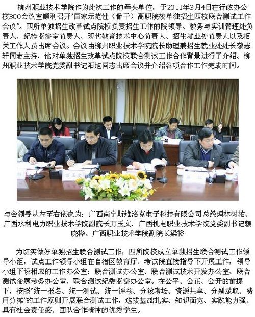 柳州教育网发布四所单独招生改革试点院校联合会议在我院召开的信息 来源:柳州职业技术学院新闻网 作者:蒋玉梅 编审: 发布时间:2011-03-10 浏览次数: 次 【字体:小 大】 分享到: 2011年3月9日,柳州教育网发布四所单独招生改革试点院校联合会议在我院召开的信息。(图/蒋玉梅) 柳州教育网发布我院信息的截图 关闭 打印正文