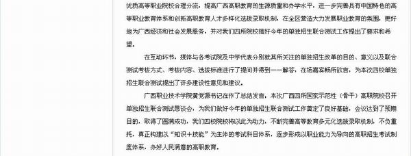 中国高职高专教育网报道我院与其他3所广西国家示范性(骨干)高职院校召开单独招生联合测试恳谈会的新闻