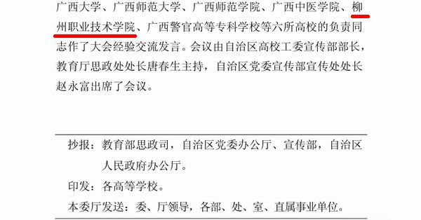 《广西教育工作简报》发布我院作为广西唯一一所高职院校在2011年全区高校宣传思想工作会议作经验交流发言的信息