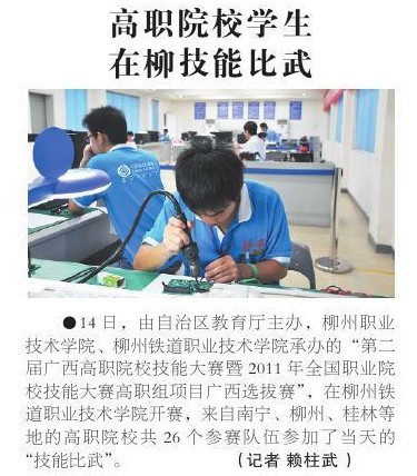《柳州晚报》报道我院承办的第二届广西高职院校技能大赛暨2011年全国职业院校技能大赛高职组项目广西选拔赛开赛的新闻