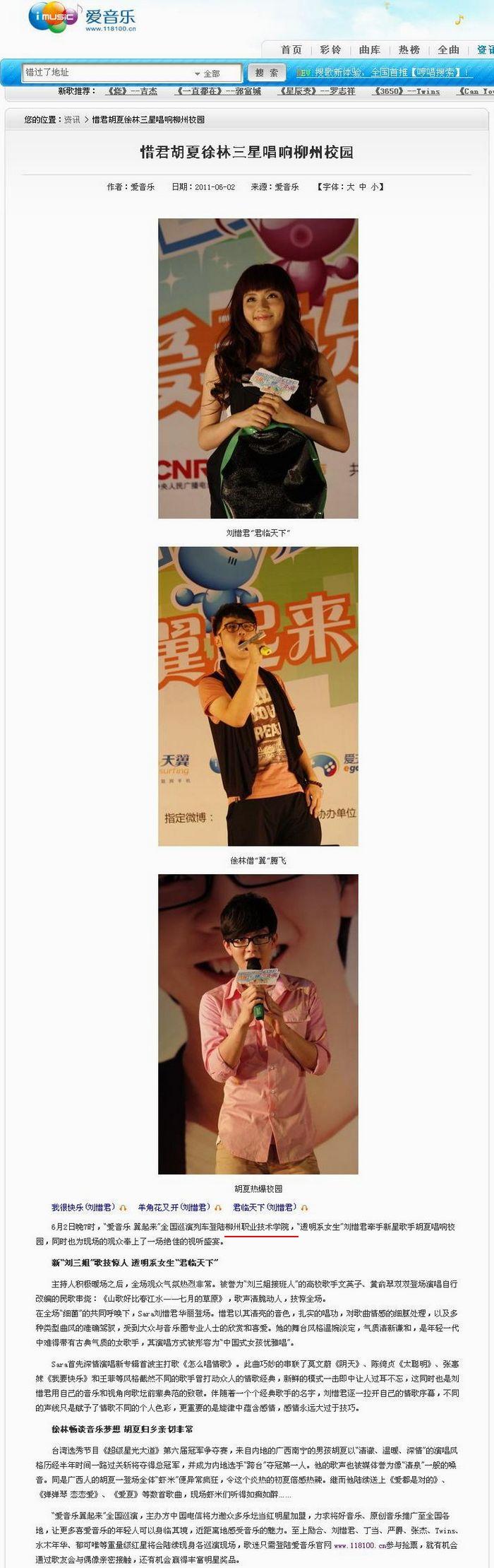 “爱音乐”网站报道我院新闻的截图