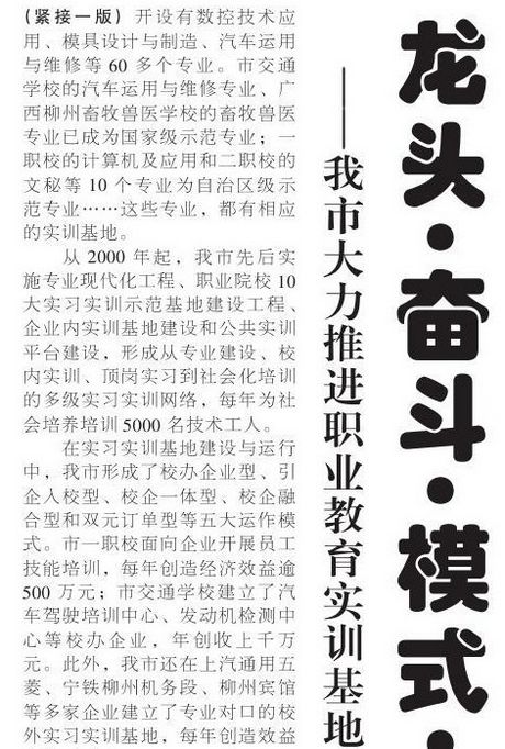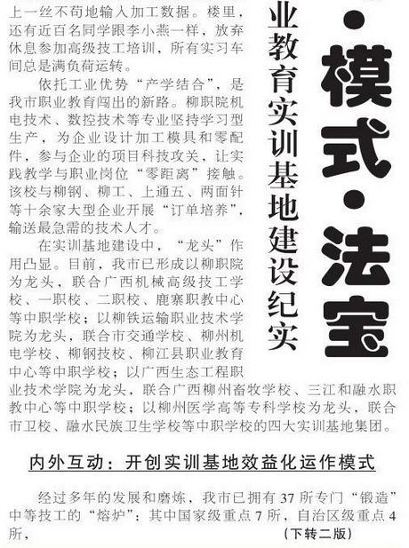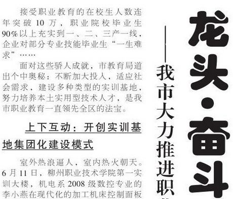 2011年6月17日,《柳州日报》要闻版刊登我院实训基地建设纪实文章。(蒋玉梅)