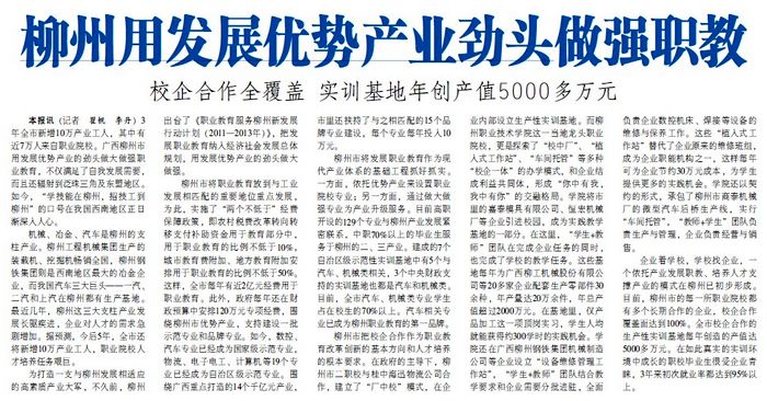 柳州用发展优势产业劲头做强职教