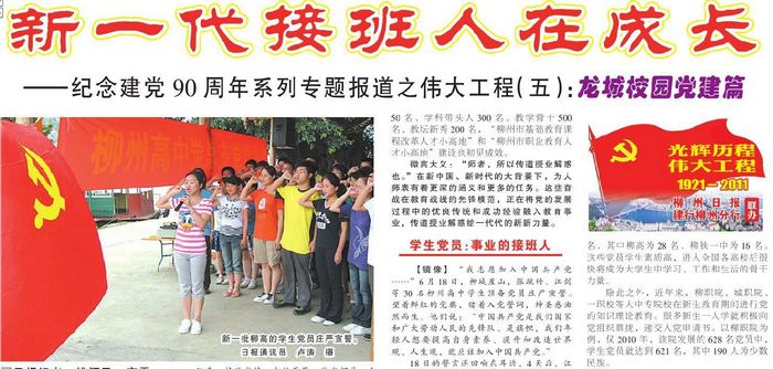 —— —庆祝建党90周年系列专题报道之伟大工程(五):龙城校园党建篇