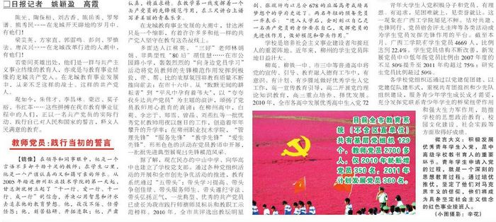 2011年6月26日,《柳州日报》报道我院党建工作成效显著、党员服务活动形式多样的新闻。(蒋玉梅)