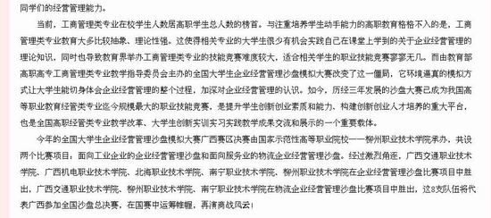 广西教育厅网站发布全国大学生企业经营管理沙盘模拟大赛广西区决赛在我院举行的新闻