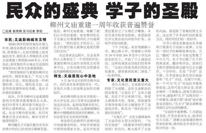 2011年10月1日,《柳州晚报》报道我院学子在祭孔大典中表现出色的新闻。(蒋玉梅)