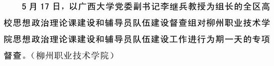 《广西教育信息》2011年第67期发布全区高校思想政治理论课建设和辅导员队伍建设督查组来我院开展专项督查的信息。(朱汝群)