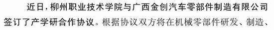 《广西教育信息》2011年第72期发布我院与广西金创汽车零部件制造有限公司签订产学研合作协议的信息。(朱汝群)