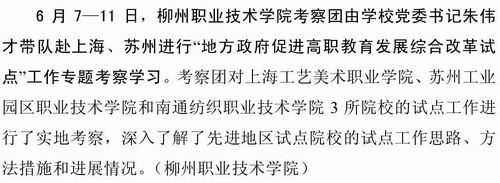 《广西教育信息》2011年第83期发布我院考察团赴省外进行“地方政府促进高职教育发展综合改革试点”工作考察的信息。(朱汝群)