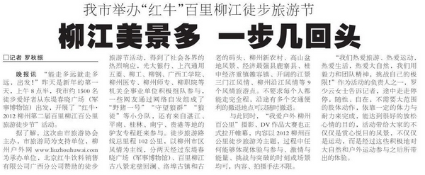 2012年1月2日,《柳州晚报》报道我院积极组织参与柳州市徒步旅游节活动的新闻。(蒋玉梅)