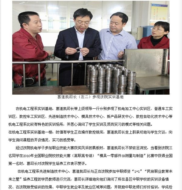 中国高职高专网发布教育部职成司领导莅临我院视察指导工作的信息