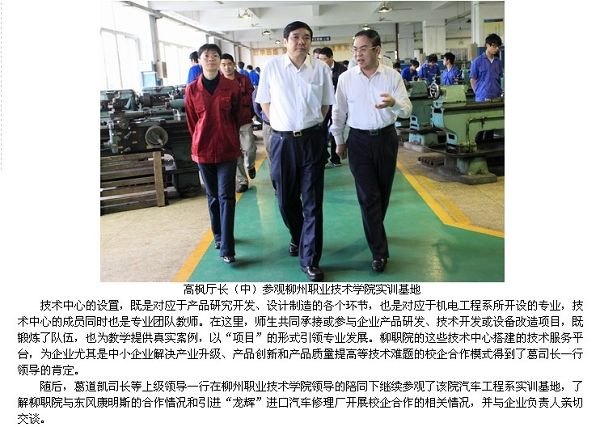 柳州教育局网站发布教育部职成司领导莅临我院视察指导工作的信息 来源:柳州职业技术学院新闻网 作者:崔智慧 编审: 发布时间:2012-04-23 浏览次数: 次 【字体:小 大】 分享到: 2012年4月20日,柳州教育局网站发布教育部职成司领导莅临我院视察指导工作的信息。(崔智慧) 柳州教育局网站发布我院信息截图 关闭 打印正文