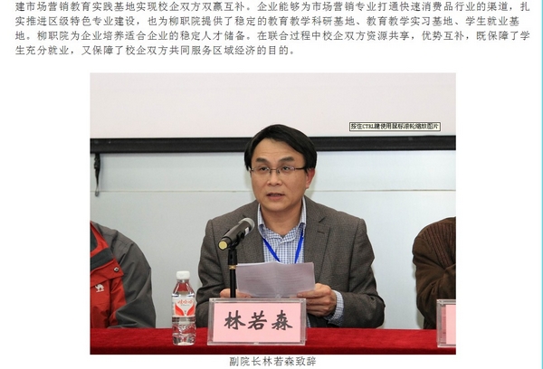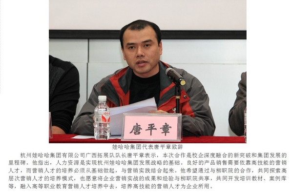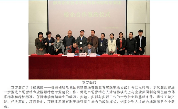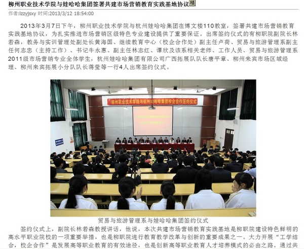 柳州教育局网站发布我院与娃哈哈集团签署共建市场营销教育实践基地协议的信息 来源:柳州职业技术学院新闻网 作者:崔智慧 编审: 发布时间:2013-03-13 浏览次数: 次 【字体:小 大】 分享到: 2012年3月13日,柳州教育局网站发布我院与娃哈哈集团签署共建市场营销教育实践基地协议的信息。(崔智慧) 信息截图 关闭 打印正文