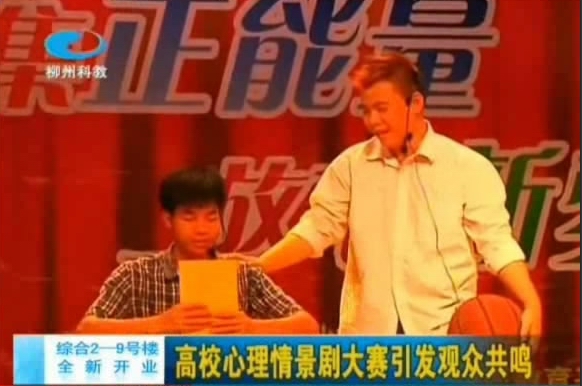 2013年6月18日,柳州电视台《新播报》栏目播出我院承办市高校心理情景剧大赛新闻。(截图/朱敬民)
