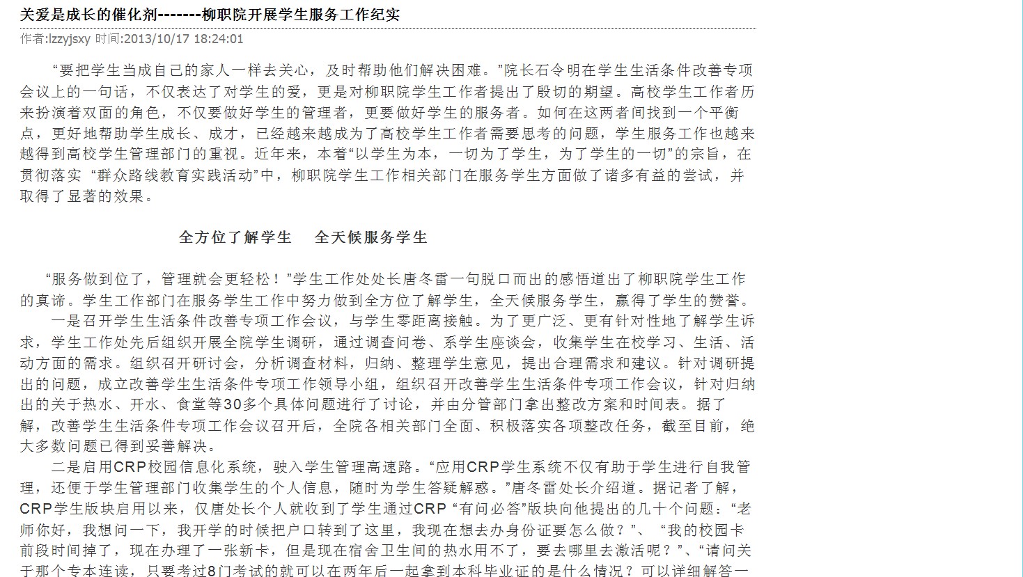 柳州教育局网站发布我院开展学生服务工作有实效的信息 来源:柳州职业技术学院新闻网 作者:崔智慧 编审: 发布时间:2013-10-18 浏览次数: 次 【字体:小 大】 分享到: 2013年10月18日,柳州教育局网站发布我院开展学生服务工作有实效的信息。(崔智慧) 信息截图 关闭 打印正文