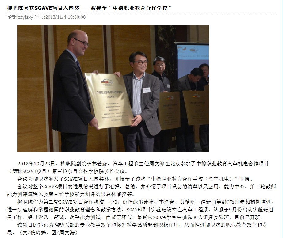 柳州教育局网站发布我院喜获SGAVE项目入围奖的信息 来源:柳州职业技术学院新闻网 作者:崔智慧 编审: 发布时间:2013-11-07 浏览次数: 次 【字体:小 大】 分享到: 2013年11月7日,柳州教育局网站发布我院喜获SGAVE项目入围奖的信息。(崔智慧) 信息截图 关闭 打印正文