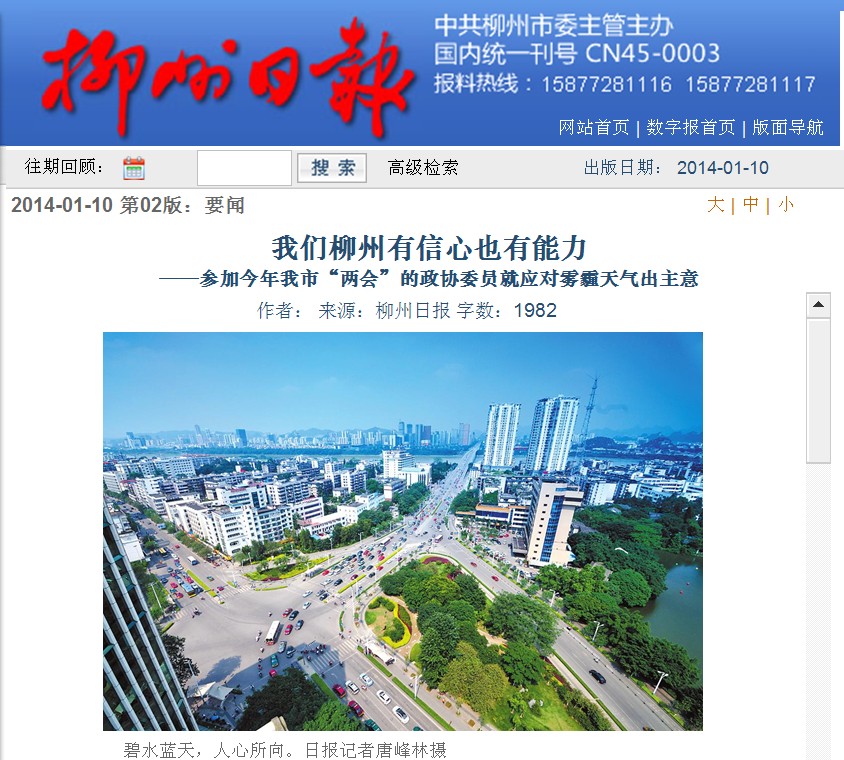 柳州日报刊发我院教师参政议政的新闻 来源:柳州职业技术学院新闻网 作者:石玉丹 编审: 发布时间:2014-01-16 浏览次数: 次 【字体:小 大】 分享到: 2014年1月10日,柳州日报在第2版,以《我们柳州有信心也有能力》为题,刊发我院教师参政议政的新闻。(截图:石玉丹) 关闭 打印正文