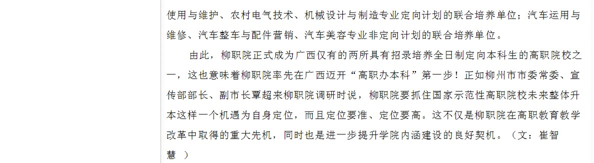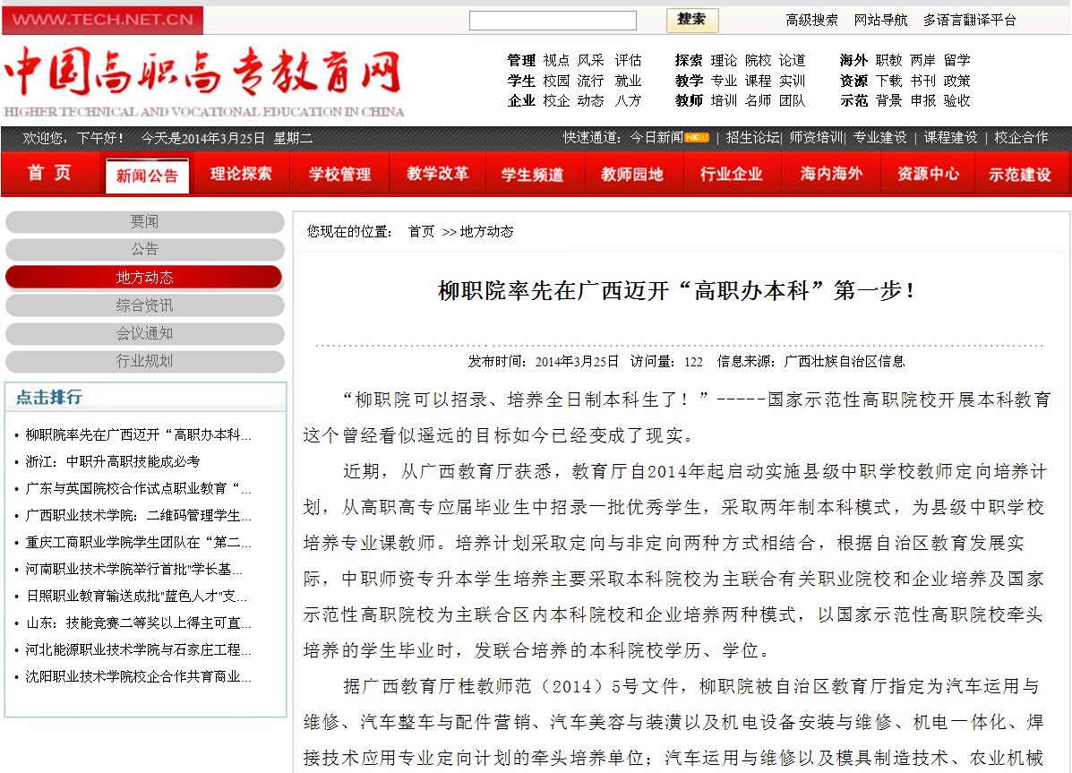 中国高职高专网发布我院率先在广西迈开“高职办本科”第一步的信息 来源:柳州职业技术学院新闻网 作者:崔智慧 编审: 发布时间:2014-03-25 浏览次数: 次 【字体:小 大】 分享到: 2014年3月25日,中国高职高专网发布我院率先在广西迈开“高职办本科”第一步的信息。(崔智慧) 信息截图 关闭 打印正文