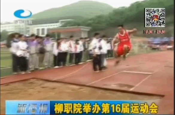 2014年4月24日,柳州电视台《新播报》栏目播出我院举办第16届田径运动会新闻。(截图/朱敬民)