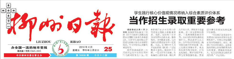 柳州日报报道链接:http://www.lznews.gov.cn:9999/epaper/lzrb/html/2014/04/25/02/02_57.htm