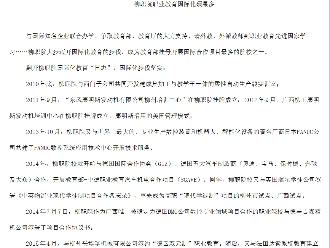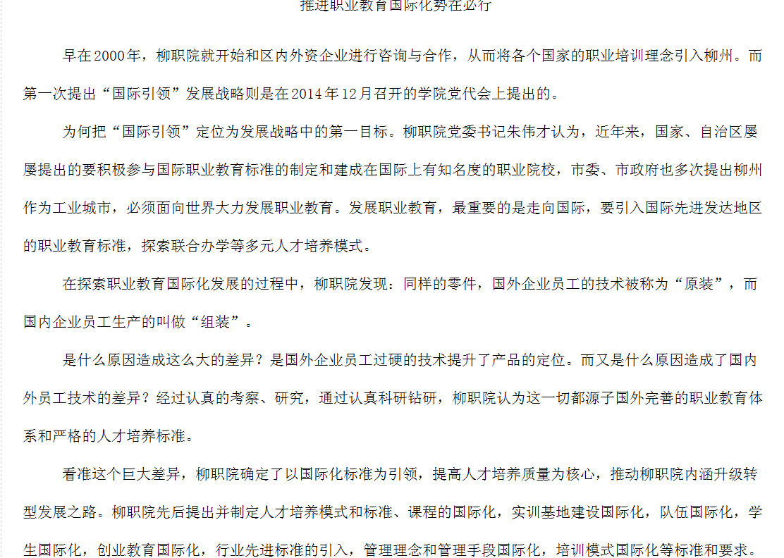柳州教育局网站发布我院职业教育国际化探索与实践的信息 来源:柳州职业技术学院新闻网 作者:崔智慧 编审: 发布时间:2015-05-04 浏览次数: 次 【字体:小 大】 分享到: 2015年4月28日,柳州教育局网站发布我院职业教育国际化探索与实践的信息。(崔智慧) 关闭 打印正文