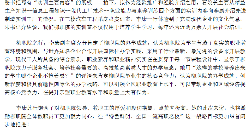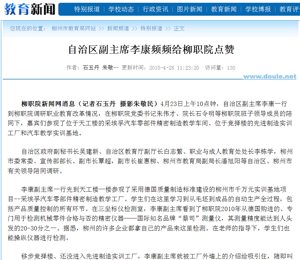 柳州教育局网站发布自治区副主席李康频频给我院点赞的信息 来源:柳州职业技术学院新闻网 作者:崔智慧 编审: 发布时间:2015-05-04 浏览次数: 次 【字体:小 大】 分享到: 2015年4月28日,柳州教育局网站发布自治区副主席李康频频给我院点赞的信息。(崔智慧) 关闭 打印正文