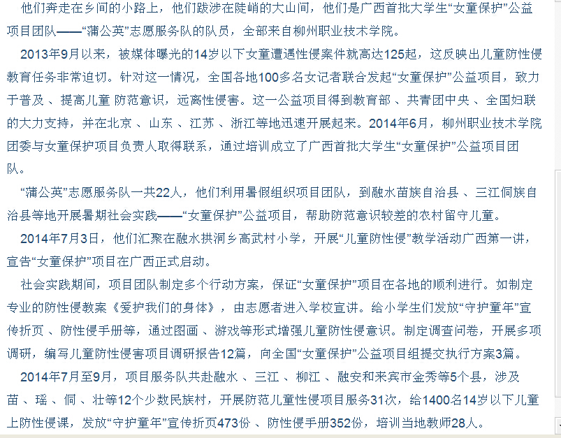 柳州日报近日刊发我院志愿者开展公益活动的新闻 来源:柳州职业技术学院新闻网 作者:石玉丹 编审: 发布时间:2015-05-06 浏览次数: 次 【字体:小 大】 分享到: 2015年5月4日,柳州日报在第2版,以“?;づ芫撕Α蔽猓⑽以褐驹刚呖构婊疃男挛?。(截图:石玉丹) 关闭 打印正文