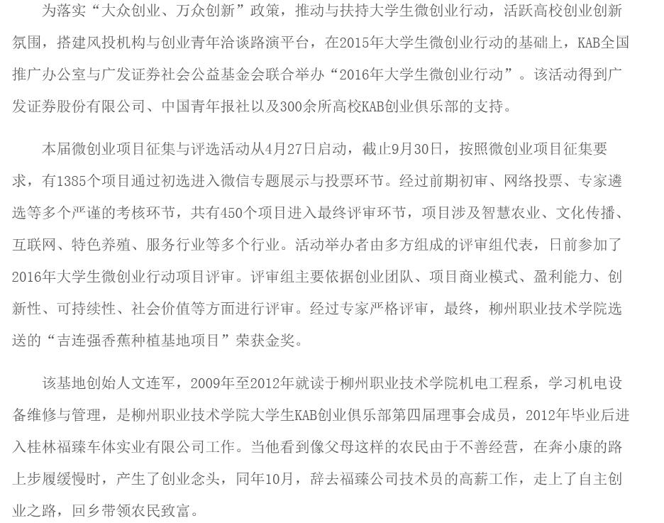 【广西新闻网】柳州职业技术学院一微创业项目获全国金奖 来源:柳州职业技术学院新闻网 作者:石玉丹 编审: 发布时间:2016-11-29 浏览次数: 次 【字体:小 大】 分享到: 2016年11月28日,广西新闻网刊发我校一微创业项目获全国金奖的新闻。(截图:石玉丹) 关闭 打印正文