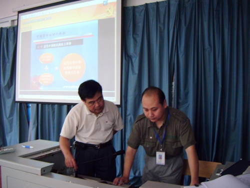 卢明教授在对黄鹏超老师进行指导