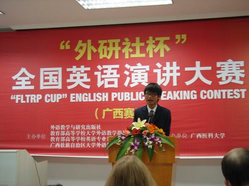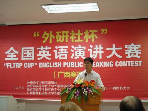 2010年,原“CCTV杯”全国英语演讲大赛更名为“外研社杯”全国英语演讲大赛。我院举办的初赛自10月启动以来,得到了全院广大师生的积极响应,同学们报名踊跃。经过学院预赛和决赛的激烈角逐,沈志、韦富天同学从近百名参赛者中脱颖而出,获得了进军全区复赛的资格。在指导老师的精心指导下,我院两位选手从语言能力及应用、演讲内容、演讲技巧、时间掌握、整体形象等方面得到了全面的提升。在全区复赛中,他们不畏强手,凭着扎实的语言功底,用流利、酣畅、饱含激情的演讲赢得了评委和观众的赞许。