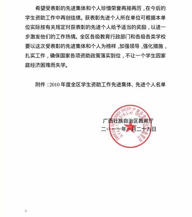 落实政策 完善体系 成效显著——我院喜获2010年度全区资助工作先进集体称号