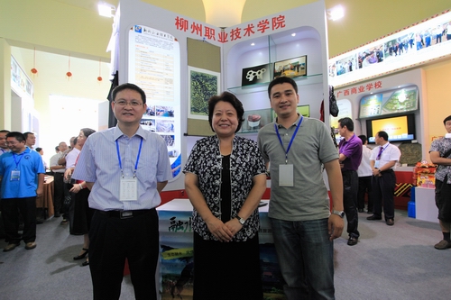 我院共有15件学生作品、3个校企合作项目参加了这次展洽会。自治区副主席李康、教育厅副厅长黄宇亲自到我院展台视察,高度赞扬我院校企合作取得丰硕成果,并与我院工作人员合影留念。