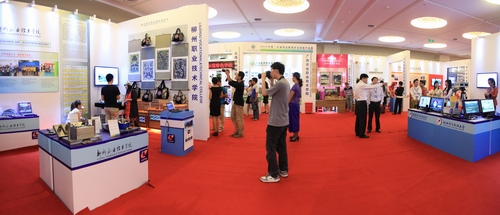 为做好参展工作,学院领导高度重视,精心组织,专门成立了以副院长熊文华、林若森为总指挥,党委宣传部牵头组织,由机电工程系、贸易与旅游管理系、艺术设计系、公共基础部等系部领导和工作人员组成的工作团队,放弃了暑期休假时间,按照教育厅统一要求设计展位,积极与会务组、设计公司联系,完成了展厅布展的整体设计方案以及文字及翻译、图片选取、视频制作、技能作品选用,为成功参展奠定了良好基础。